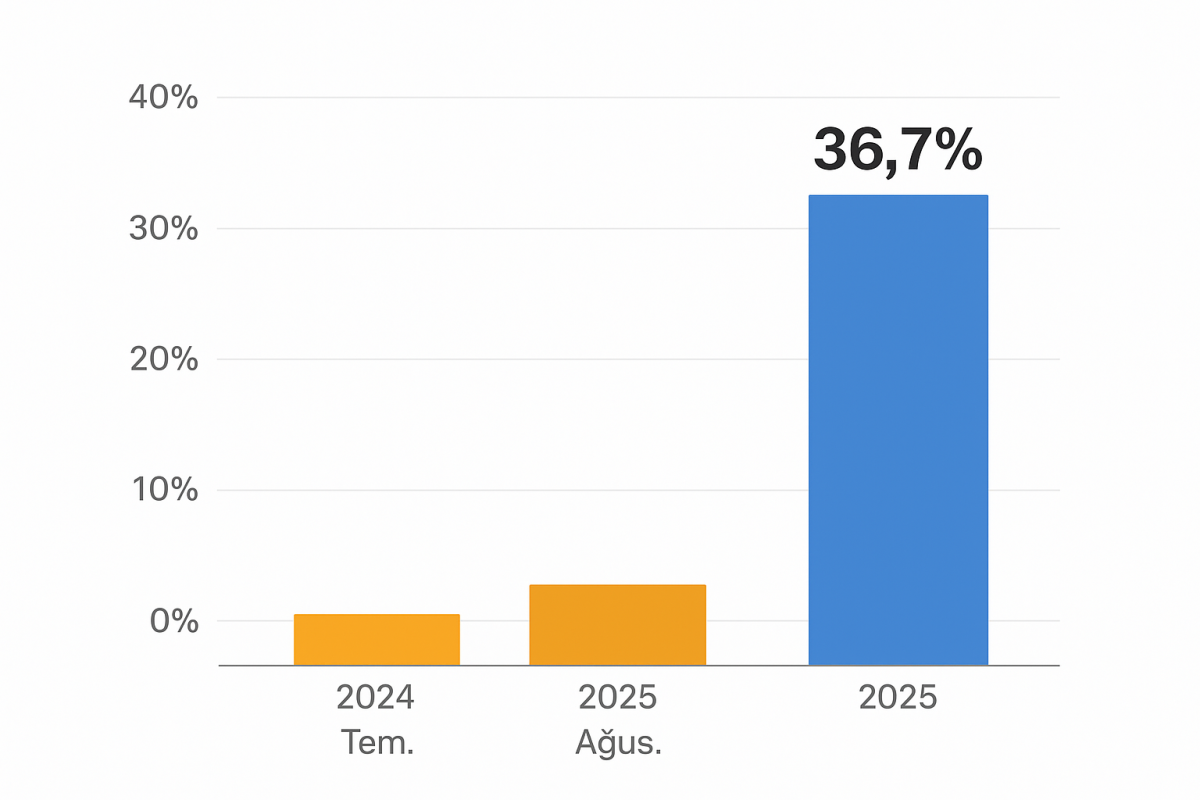 Yıllık karşılaştırmada, sanayi sektörü ciro endeksi %32,4, inşaat sektörü %53,2, ticaret sektörü %35,6 ve hizmet sektörü %40,6 oranında yükseldi. Özellikle inşaat sektöründeki yüksek artış dikkat çekti.