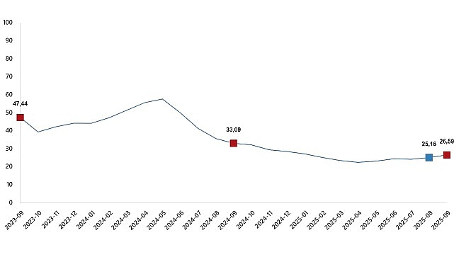 Yİ-ÜFE (2003=100) 2025 yılı Eylül ayında bir önceki aya göre %2,52 artış, bir önceki yılın Aralık ayına göre %23,66 artış, bir önceki yılın aynı ayına göre %26,59 artış ve on iki aylık ortalamalara göre %25,83 artış gösterdi.